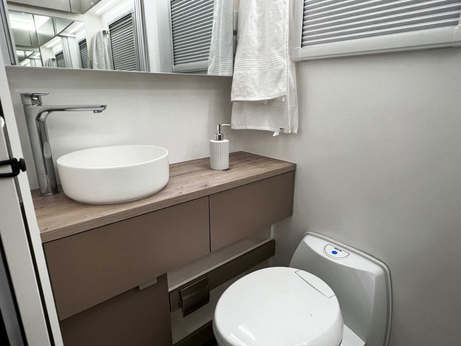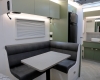New features include a curved robe, thicker 25mm benchtops, and a relocated kitchen and bunks on the doorside for better flow. The toilet has been moved to the roadside, improving space and balance. Inside, enjoy USB-C charging, a sleek single-bowl sink, and acoustic wall panels for a quieter, more refined interior.