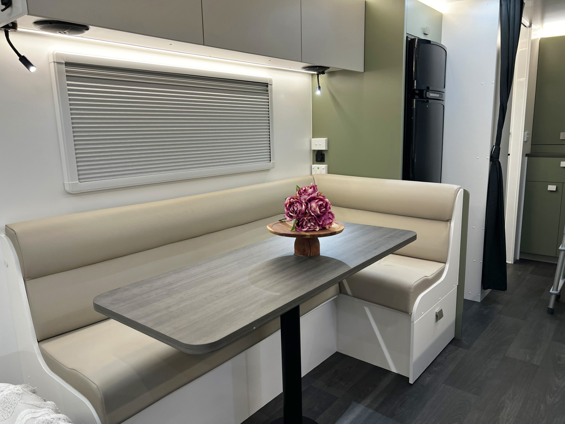 Updated decals, fresh interior colour options, and Brushed Nickel hardware with Chrome tapware complete the premium family-friendly feel. Combining modern styling, quality craftsmanship, and clever design, the Road Owl 21BE is built for families who want to explore Australia together in comfort, confidence, and style.